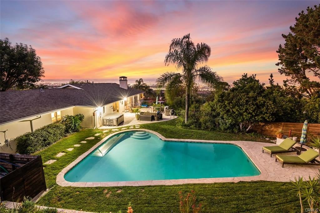 Request InfoGorgeous Completely Remodeled Ranch Home on a spectacular almost half-acre lot with sweeping views from Santa Monica to the Los Angeles Harbor. Fantastic open floor plan with formal living room and dining room, family room area, master suite, and two bedrooms, each with their own bath, located on the main level. Downstairs is an additional family room and a fourth bedroom with bath that would be perfect in-law quarters or separate apartment area with private entrance. This beautiful home has been extensively remodeled and upgraded, and is ready to move in and enjoy. The expansive grounds offer a resort-like backyard with large pool and entertaining areas, all with exceptional views of the Los Angeles basin below. Located on a quiet cul-de-sac, this property offers a dream oasis with tranquil areas to wander and relax and bountiful fruit trees.